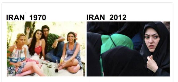 伊朗两个时代女性穿着比较,图片来源:推特