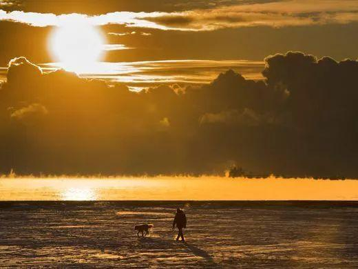 同样不怕冷的当然还有加拿大多伦多的狗狗爱好者。不过,在冰冻的湖面上遛狗小编也是第一次见,竟然还有一种油画般的诗意美呢。