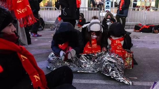 好奇心爆棚的小编还是不忘去手贱去翻一翻在体感零下20摄氏度的时报广场,各位“勇士”们是如何度过等待“水晶球”降落的那10个小时的。