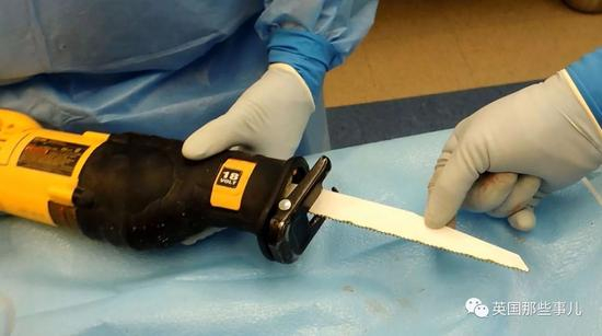 他先是吃力的用手术刀在尸体脖子上切口子,剥开尸体的头皮,然后又用建筑用的电动锯从耳朵后面开始来回锯……