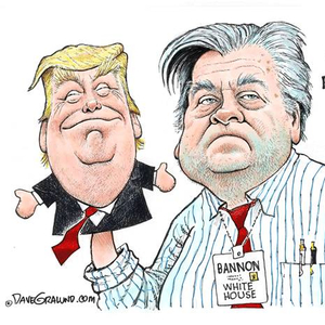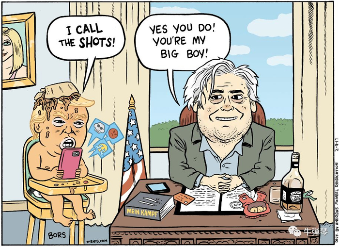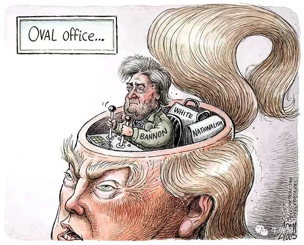 一个典型的美国漫画就是:特朗普只是前台的一个牵线木偶,真正的权力,掌握在胡子拉碴的班农手里。反正,时代周刊有一期封面,大头像就是班农,旁边标题是“伟大的操纵者”。