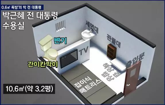 据《纽约时报》报道,朴槿惠居住在一个单人牢房,睡在地板上的可折叠床垫上,需要自己洗衣服。每间牢房都有一台电视机、一个盥洗池、一个小橱柜和一个阅读桌,同时兼作餐桌。电视机只播放司法部批准的节目,包括新闻,纪录片和肥皂剧。