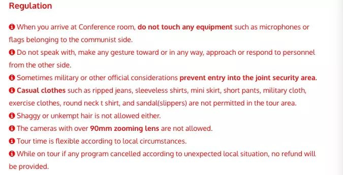 一家旅行网站推出的板门店一日游产品中,“告诫”游客应遵守以下注意事项: