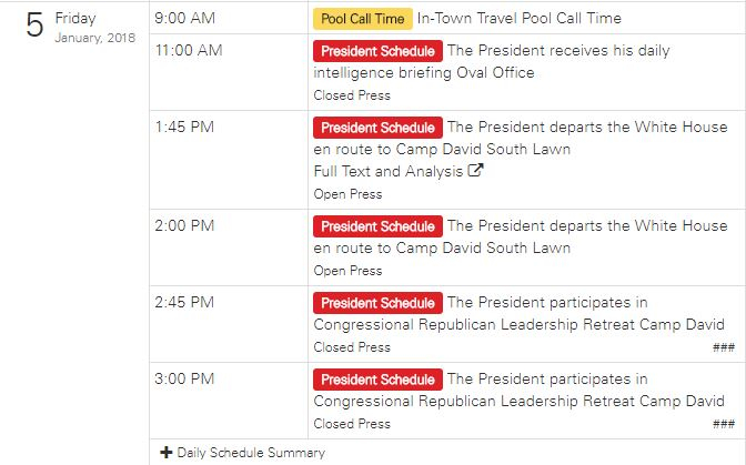 但据Axios新闻比较特朗普近日的日程与以往的日程,在特朗普当上总统之初,其日程远比现在紧凑。他甚至会利用早餐时间会晤,一般情报简报在11:30即可结束。