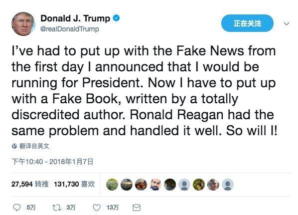 △ 特朗普发推特回应“一个不靠谱作者写的一本假书” 来源:Twitter
