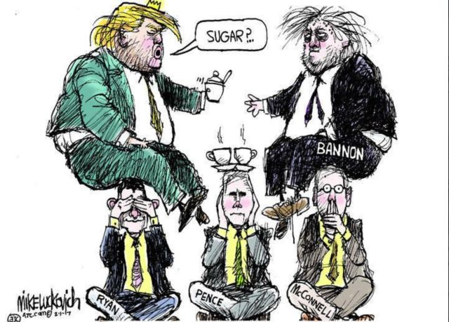 除此之外,《火与怒》还从不同侧面刻画了特朗普的形象。书中介绍,特朗普基本就是个“半文盲(semiliterate)”——他什么都不知道,也从不读书,甚至连扫都懒得扫一眼。更可怕的是,他也听不进去别人说的话,你说的越多,他听得越少。与此同时,特朗普还自以为是、狂妄自大,觉得自己什么都懂:特朗普喜欢军人,功勋章越多越好,因此他让马提斯、麦克马斯特、凯利等军人执掌美国的外交和国防政策;可是他又讨厌被别人告诉自己该做什么,麦克马斯特和特朗普交流就好像老师教一个顽皮惹人厌的学生,以至于特朗普在4月初叙利亚危机的时候想炒了麦克马斯特——彼时麦克马斯特刚刚接替福林担任国家安全顾问仅6个星期。