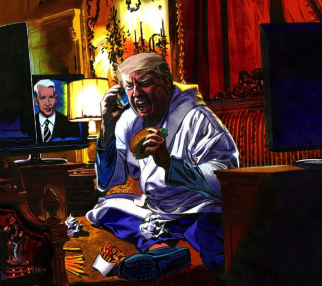 同样,特朗普也不知道自己作为总统的一言一行意味着什么,更不会长记性,只会重复地口出狂言,从不改变自己的行为。然而在内心深处,Wolff描写了特朗普的“不安全感”——他是近数十年来第一个不和第一夫人同眠的总统,因为害怕被人下毒所以只吃不健康的垃圾食品,对清洁工随意整理他的物品非常敏感,连自己的儿子和女儿都不信任,后悔让伊万卡进白宫。