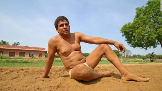 而引领了村庄健身潮流的,是这个叫Vijay Tanwar的大叔,17年前,他错过了一个代表印度摔跤队备战参加奥运会的机会。于是他只能寻找一个其它机会,让他强健的体格能有用武之地。