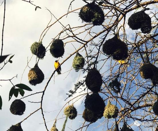 而且卢旺达还有“百鸟之国”的称号。一个个鸟窝像一颗颗倒挂着的心,是不是欢乐而温馨?