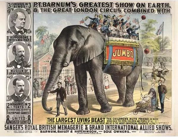1882年,伦敦动物园觉得以金宝的身体状态,留在手里也是个“定时炸弹”,就以2000英镑的价格把他卖给了并称世界三大马戏团之一的美国玲玲马戏团。