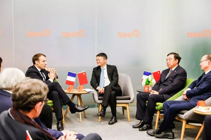 ▲ 他不仅在北京SOHO 3Q向中法企业家演讲,与刘强东、马云、潘石屹等中国企业界大佬亲切交流,更是见证了中法企业家委员会的成立。