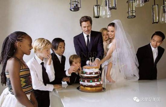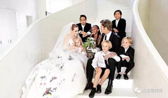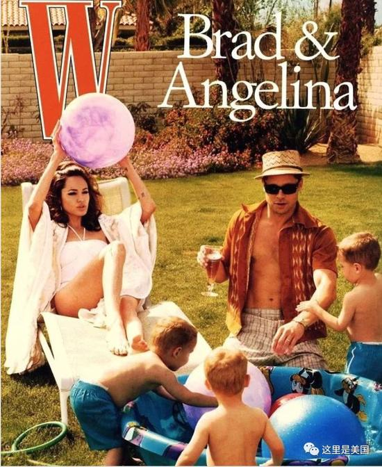 3个月后,皮特和朱莉带着一群小演员一起登上了美国W杂志,说这才是皮特梦寐以求的家庭生活。