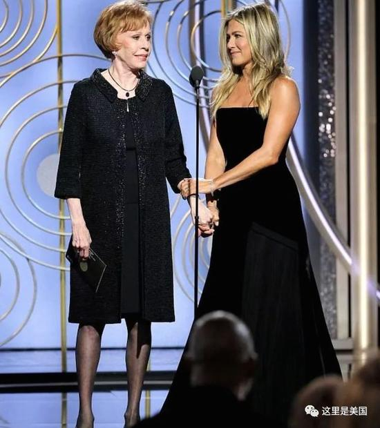 当时,安妮斯顿和卡罗尔·伯纳特一起上台颁奖。