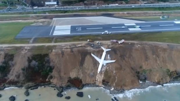 土耳其飞马航空飞机冲出跑道 险栽进海里(图)