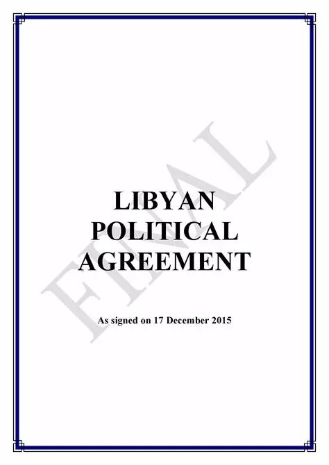根据该协议,在利比亚政治对话中产生的9人总理委员会承担新组建的民族团结政府工作,由法耶兹·萨拉杰领导。协议指出,新的民族团结政府应立即着手解决利比亚当前面临的打击恐怖主义威胁、改革和建立政府机构、恢复和刺激经济发展以及控制非法移民等一系列紧迫问题。由国际社会承认的位于东部城市托布鲁克的国民代表大会则成为利比亚的议会。