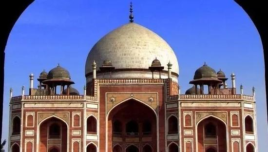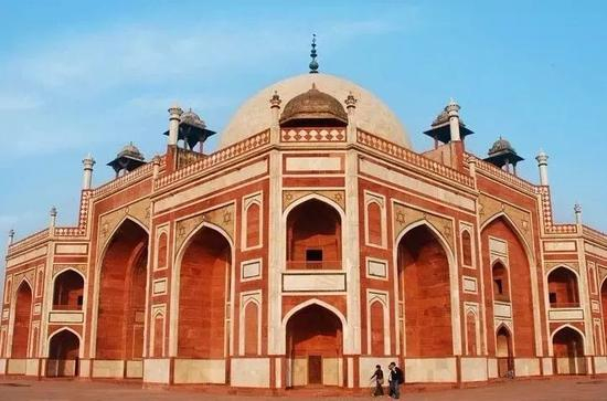国王胡马雍的花园陵墓又是一座莫卧儿时期的典型建筑,你也许会觉得它的“洋葱头”外形酷似泰姬陵——因为它正是泰姬陵设计灵感的来源!这个波斯风格的建筑庄严宏伟,一如既往地彰显了强盛的莫卧儿帝国喜好气派的特点,充满伊斯兰建筑的几何美感。其主体建筑由红色砂岩构筑,陵体呈方形,四面为门,陵顶呈半圆形。整个建筑庄严宏伟,为印度乃至世界建筑史上的精品。