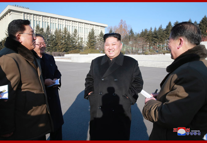 在视察经过改建的国家科学院革命史迹馆时,金正恩说,要通过改建出色的革命史迹馆周密搞好思想教育,使所有科学家保持“搞科学也只在朝鲜劳动党的红旗下搞”的坚定信念。