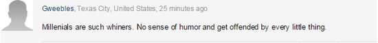 千禧一代真是爱抱怨啊。一点幽默感都没有,还玻璃心。