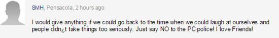 如果可以,我愿意不惜一切代价回到那个时代,那时我们可以笑自己,笑别人,大家都不会那么较真。只想对这些道德警察说不!我爱《老友记》!
