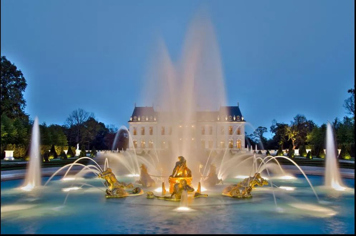 花园完全遵循负责打造凡尔赛宫花园的十七世纪景观师安德烈•勒•诺特(André Le Nôtre)的园艺理念,花园内修剪整齐的黄杨、打造成三角立方体的树木、规整的花园迷宫、菜园、精致的马槽、驯养山羊的农场,这一切简直是凡尔赛宫花园的翻刻版。花园2公里长的迷宫图形共需十名园艺师来维护。这些园艺师每周需修剪两次花园。花园内的喷水池和灯光可通过智能手机软件操控。