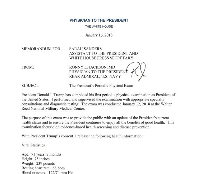 “心智正常” 白宫公布特朗普体检报告详情(全文)