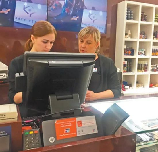 莫斯科加加林广场商圈,商家店铺林立,八成以上标示可用银联卡。在一家品牌专卖鞋店,售货员瓦莲金娜告诉记者,店里用银联支付已有9年。