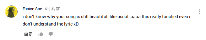 不知道为什么,你的歌一如往常的好听。虽然听不懂歌词,但这歌曲就是打动了我。