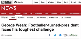 “乔治。维阿:球员出身总统面临生涯最严峻挑战。”