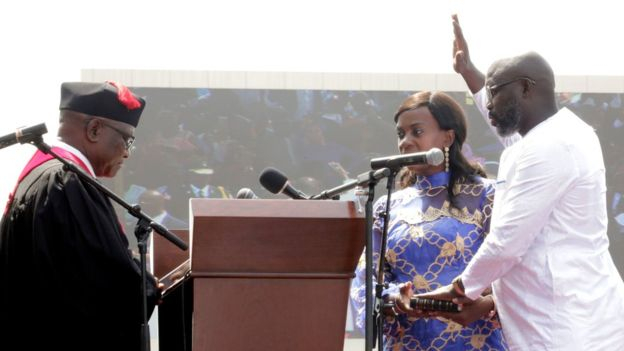 维阿的总统就职典礼于当地时间22日在利比里亚首都蒙罗维亚的体育场中举行。维阿在就职演讲中表示,“我的一生有许多年都在体育场中度过,但是今日我的激动之情前所未有”。