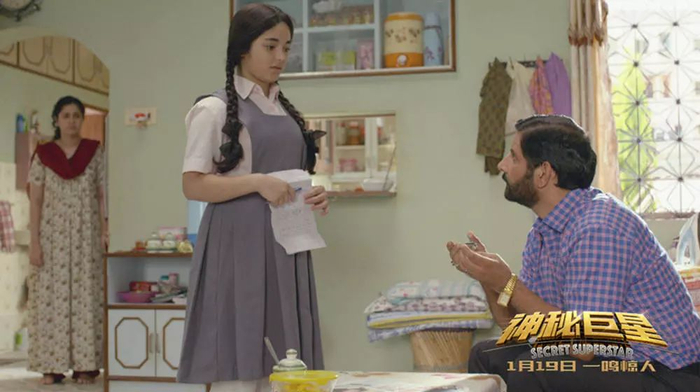 在《神秘巨星》中,父亲成为了印度社会男权文化的象征,在观众眼中集各种“恶习”于一身,对妻子动手施暴,对女儿冷漠而高压。在家中他就是至高无上,不给祖孙三代女性喘息的空间。