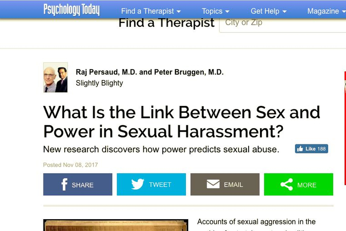 美国心理杂志《Psychology Today》解释性骚扰与权力