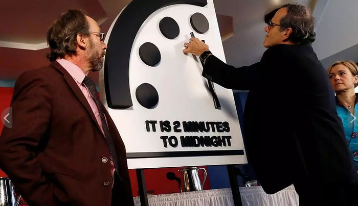 近日,《原子科学家公报》在华盛顿的一场新闻发布会上,宣布“末日时钟”被拨快30秒,现在距离午夜只有2分钟。