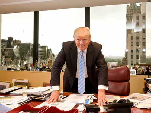 不过特朗普在当总统之前,他还在特朗普大厦办公的时候,办公桌可充实多了。他在特朗普大厦的办公桌上堆满了文件,窗台上也摆满了奖杯和人偶。