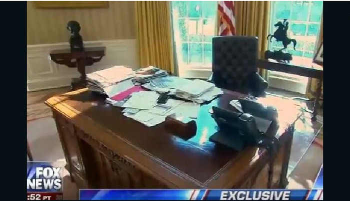 在他接受福克斯不久之前的采访时,特朗普指着自己的办公桌说,“看看我的桌子吧!这么多文件,在其他的总统桌上,你可看不到这些!”