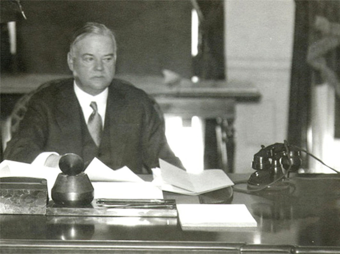 1932年,胡佛的办公桌,同样也是堆满了文件。