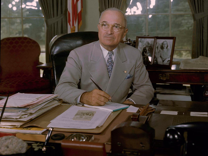 杜鲁门也被成摞的文件和家人的照片环绕着。