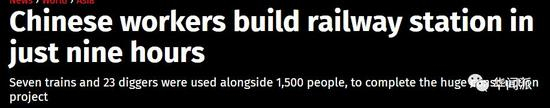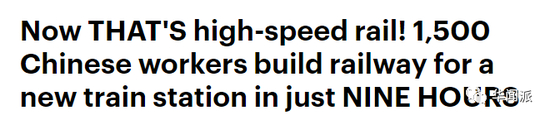 《每日邮报》的文章标题是这样的:这才是高铁!1500名中国工人在短短9小时内就为新火车站修建铁路。