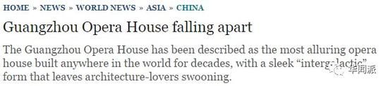 建成一年之后,《每日电讯报》就以《广州歌剧院要散架了》为题,报道了广州歌剧院墙面和天花板出现了巨大的裂缝,玻璃幕墙发生脱落的新闻。文中把原因归咎为“中国对待重大建设项目时追求高速,但往往草率仓促”。