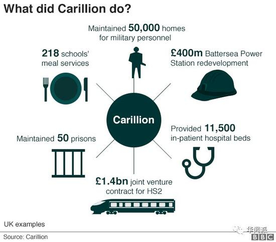 虽然Carillion承担着像HS2铁路项目、房屋、医院、学校、监狱和防卫设施等政府的建筑项目,但英国政府却没有像2007-09年金融危机时期对大型银行那样,向Carillion伸出援手,只是表示应急预案已经到位,正在密切关注进展情况。