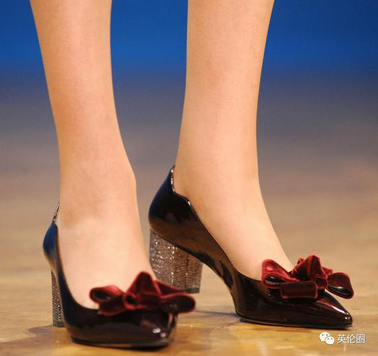 这双装饰有丝绒蝴蝶结的红色高跟鞋,以及频繁出镜的黑色长筒靴都来自这个品牌。