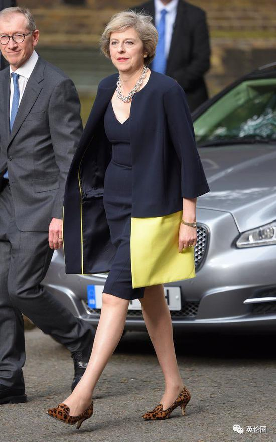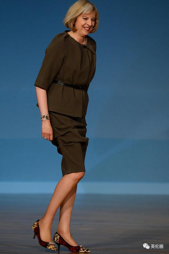 关于梅姨的爆款豹纹鞋,圈哥之前也写文八过:梅姨觐见女王穿的豹纹小高跟已成爆款,来跟首相学穿搭!