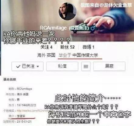 不过最有中国特色的还是“毕业于中国传媒大学”的李建军(理查德·阿米蒂奇)