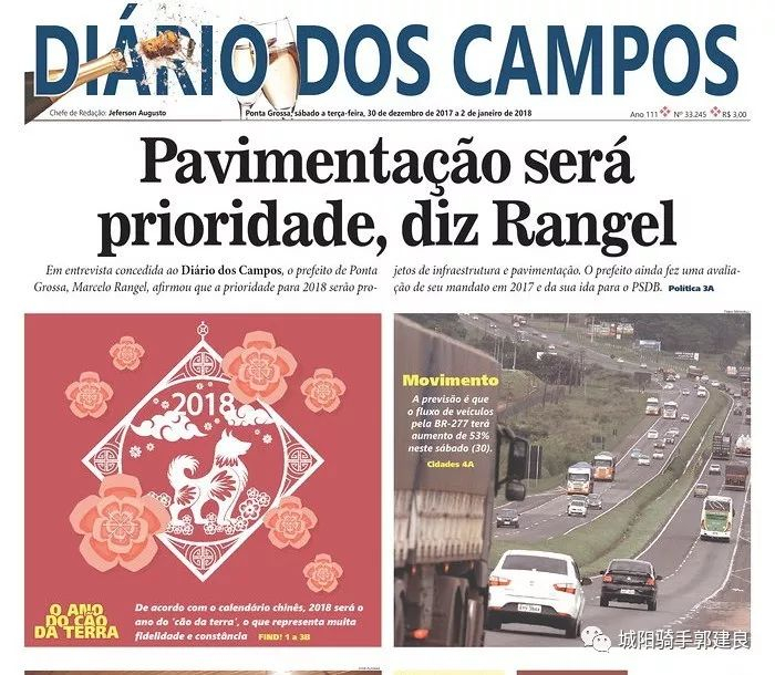 2017年12月31日巴西《DIÁRIO DOS CAMPOS》报头版
