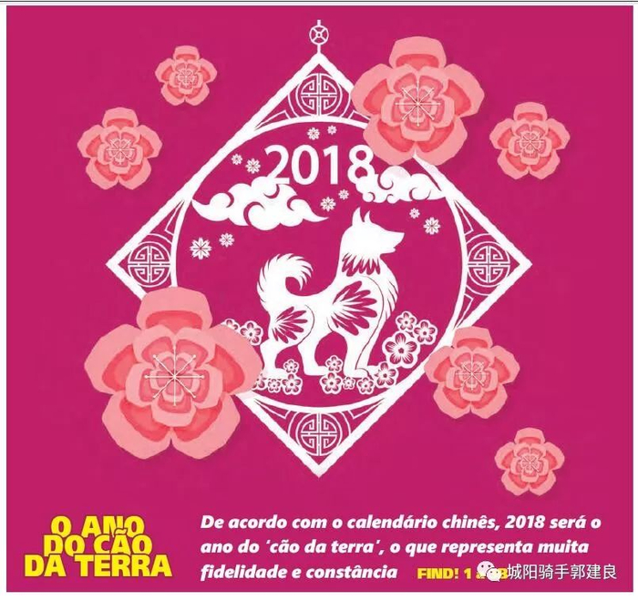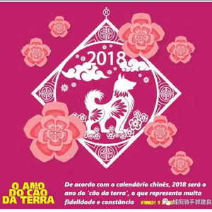 2017年12月30日,在巴西蓬塔格罗萨出版的《DIÁRIO DOS CAMPOS》报头版,设计得具有汉民族文化色彩,且年味十足。头条是一幅红底图画,在盛开的梅花中间,是一件外方内圆的剪纸作品,剪纸作品的主体形象是一条昂首挺胸的狗,站在开满鲜花的大地上,遥望远方。天空飘着祥云和雪花,祥云之上还有“2018”年号……喜气洋洋过大年的感觉。图画的左下角,黄色标题字写着:“狗年”(O Ano docão da Terra)。旁边的白色小字介绍了“狗年”的来历:“根据中国的农历,2018年将是狗年,狗代表了忠诚和坚贞。”