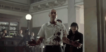 于是库珀寻思,不妨叫凶手早点亮相,在开头就亮相,让他秀秀自己在背地里鼓捣的那些鬼花招儿。这时观众就能有强烈的身临其境之感,感觉自己在从那个极端宗教信仰者的古怪角度看世界。