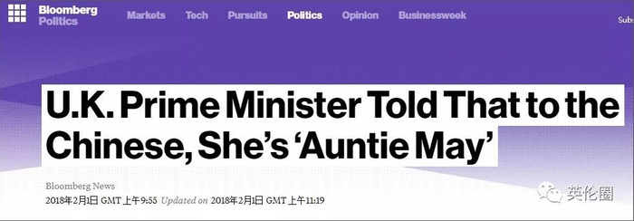 彭博社:英国首相特雷莎·被告知,对在中国人口中,她是“梅姨”