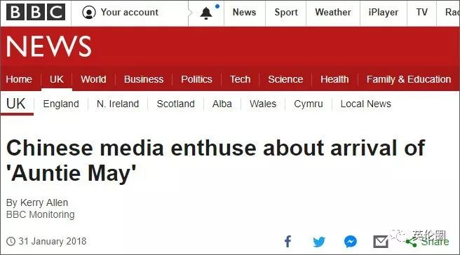 BBC News:中国媒体热切欢迎“梅姨”的到来