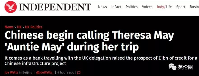 独立报:中国人在特雷莎·梅访华期间开始称她为“梅姨”