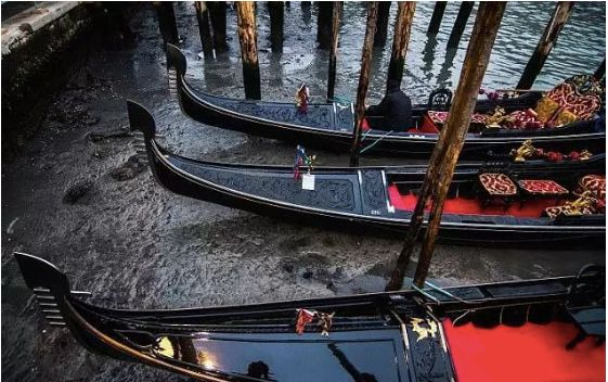 水上城市意大利威尼斯一直被认为是一座传奇城市。运河上的船只,是威尼斯人的主要交通工具。但最近,不寻常的天气笼罩着威尼斯,威尼斯的一些运河干涸。不少河道河床被暴露出来,主要交通工具贡多拉船陷在淤泥中。