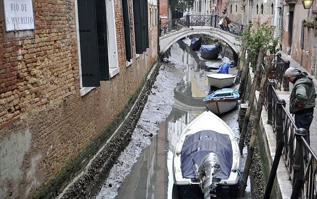 最新测量数据显示,威尼斯的水位比平时的正常水位低70厘米,由于水位过低,船运受到影响,威尼斯城内运河交通陷入瘫痪。船运只能暂时停止,直到运河里的水再度涨起来,船才能继续通行。
